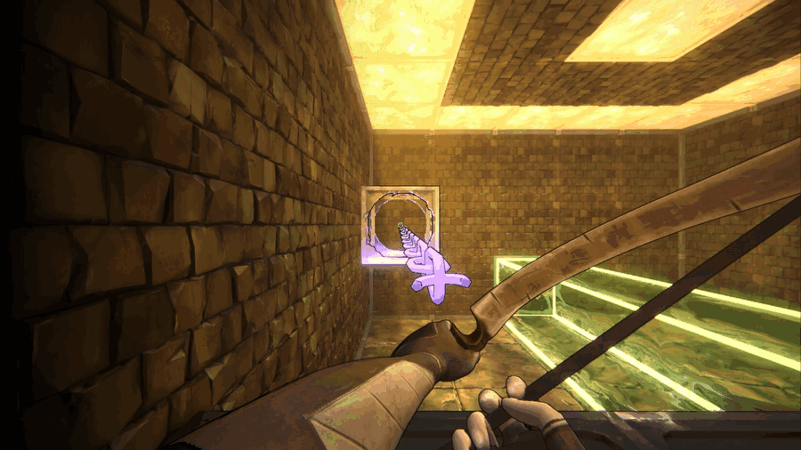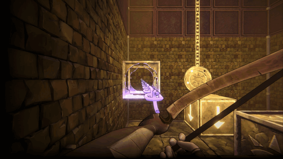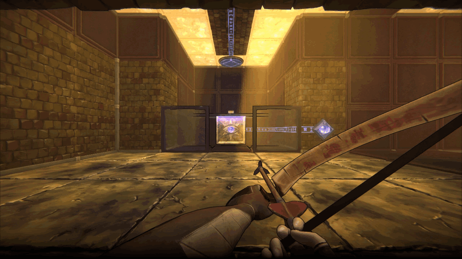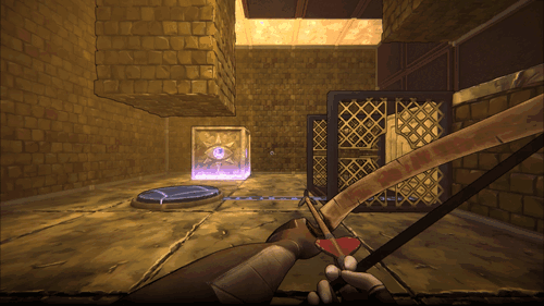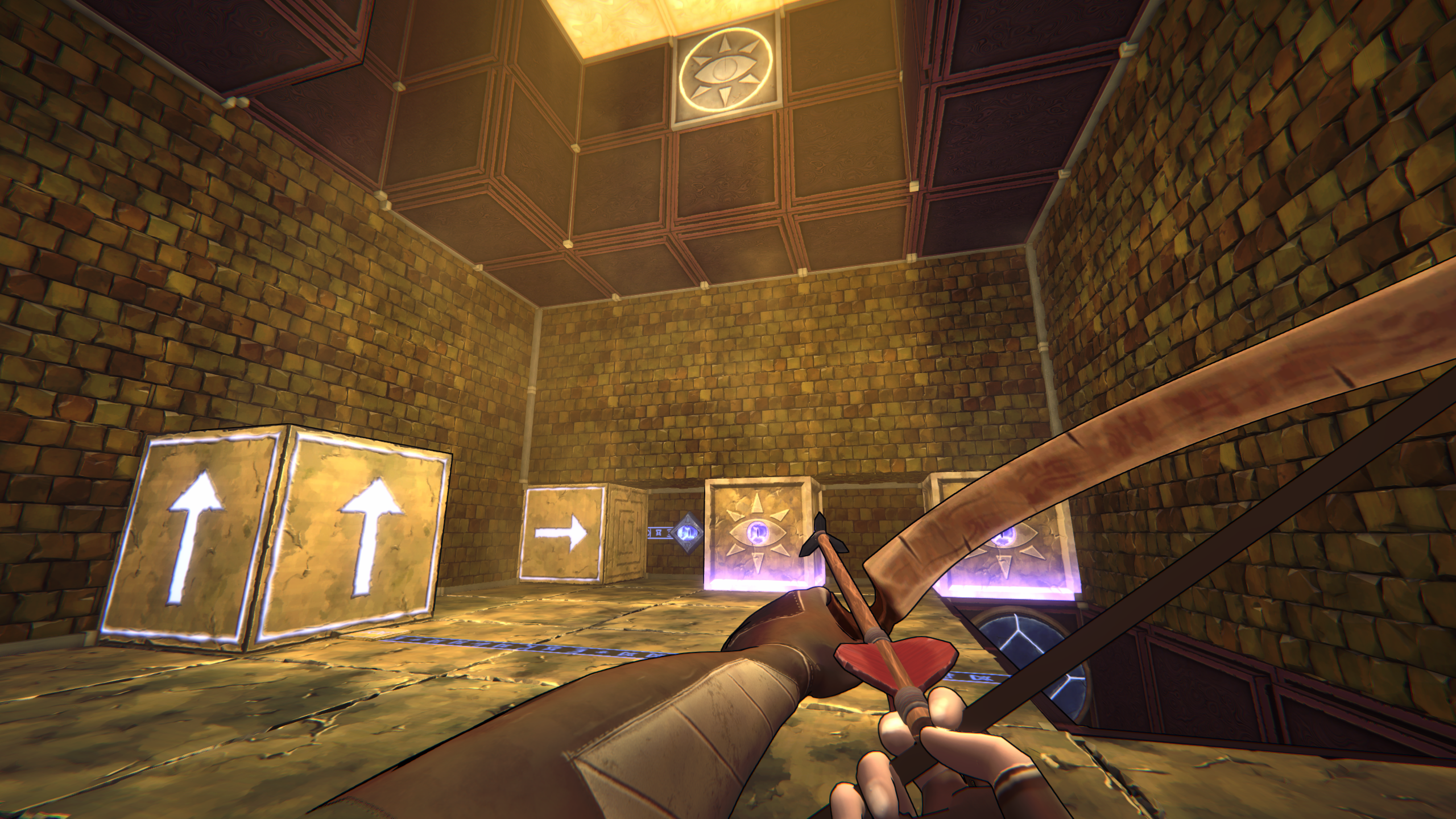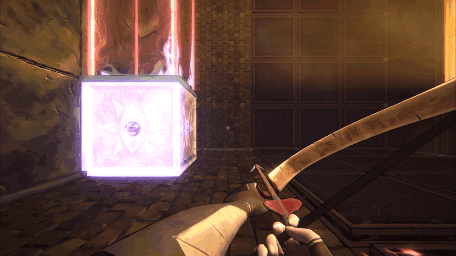 - Unique 3D puzzles, solved by shifting blocks with a magical bow, traversing the walls and ceilings
