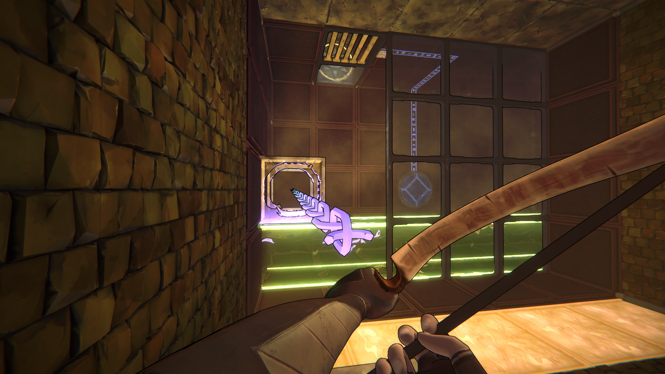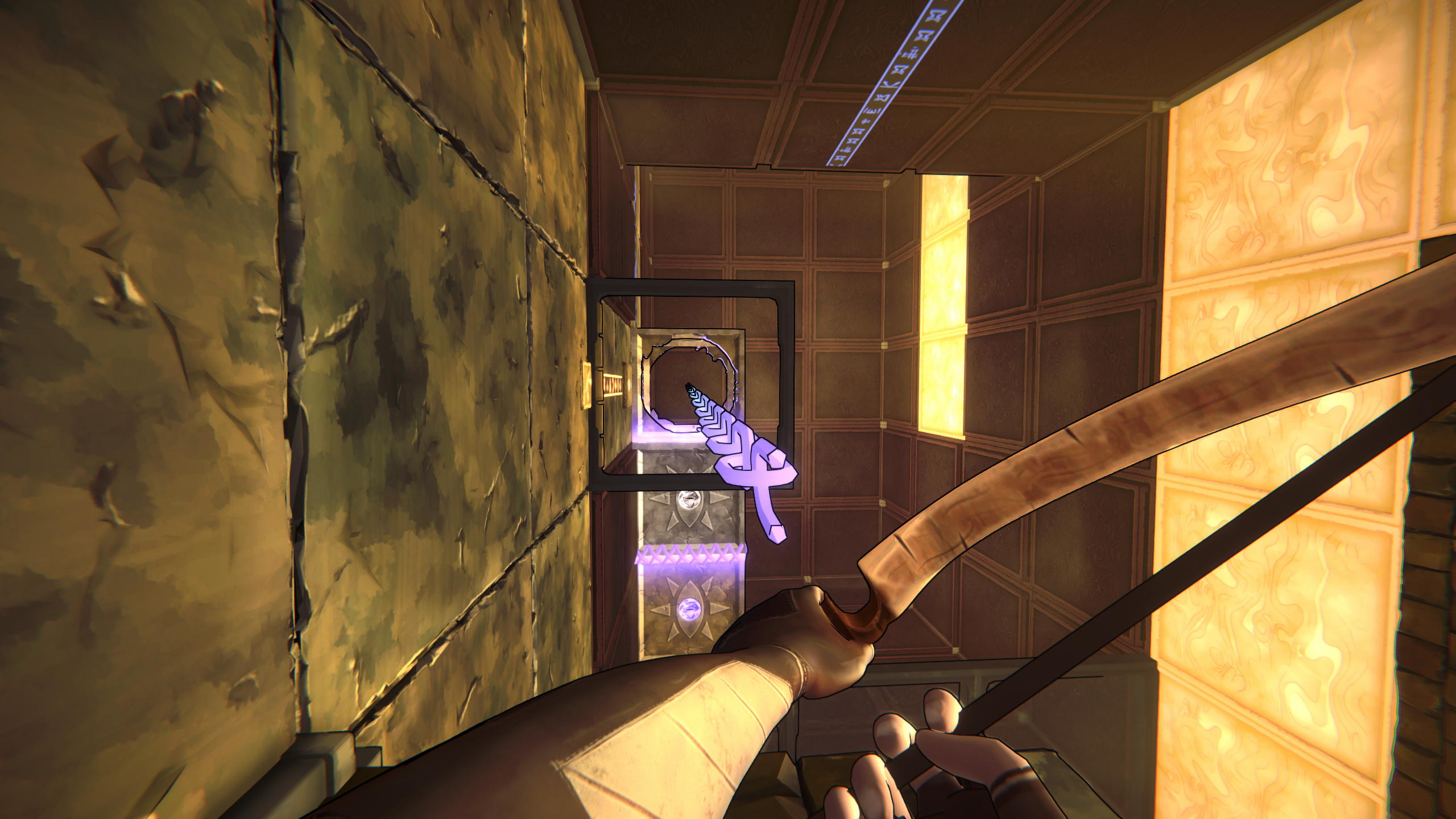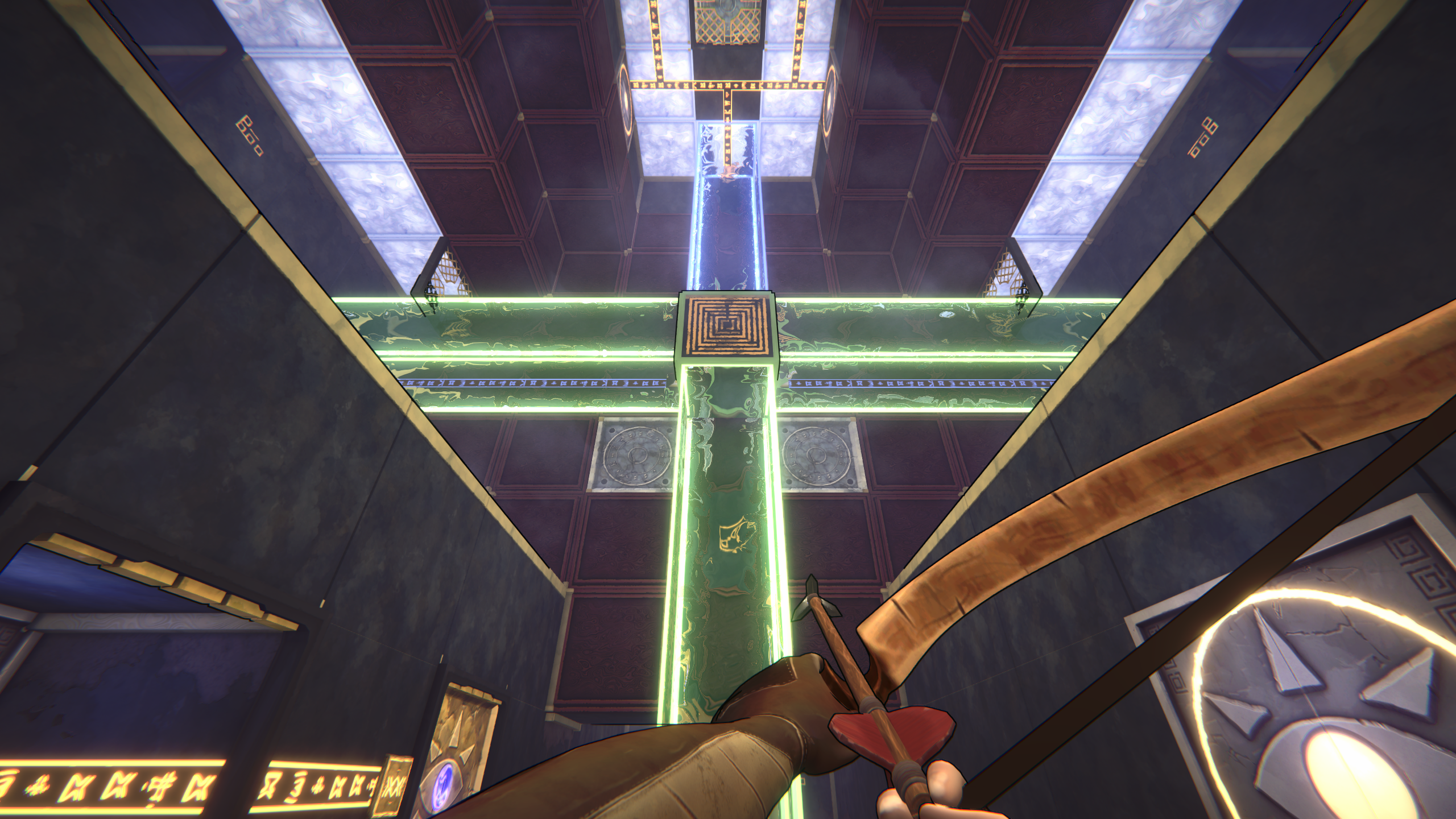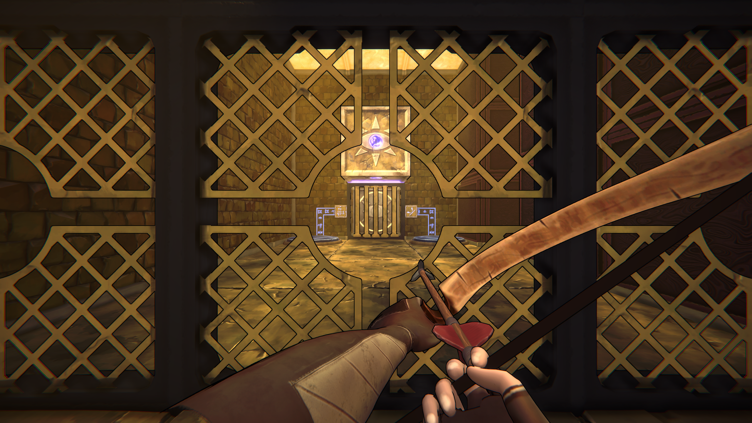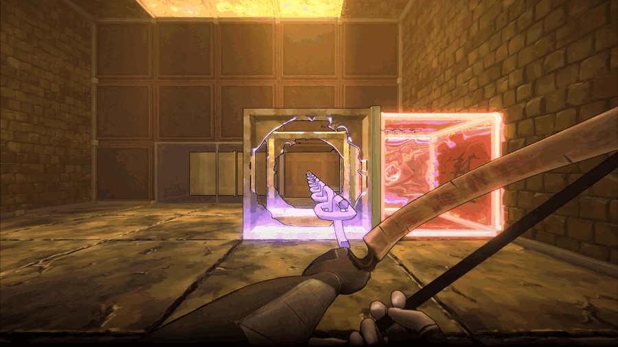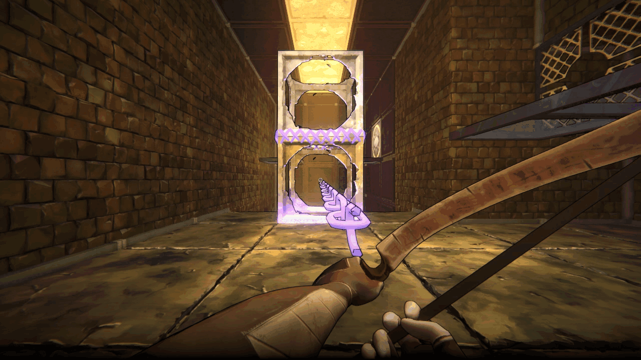 - Unique 3D puzzles, solved by shifting blocks with a magical bow, traversing the walls and ceilings